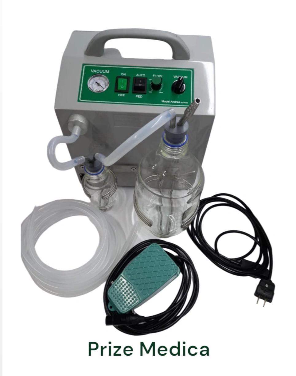Accesorios : cable conexión a corriente, pedal con sostenimiento , frascos refractarios para esterilización , tapones siliconados aptos para esterilizar con sus respectivos acoples , 2.50 mts de manguera siliconada grado médico para succión